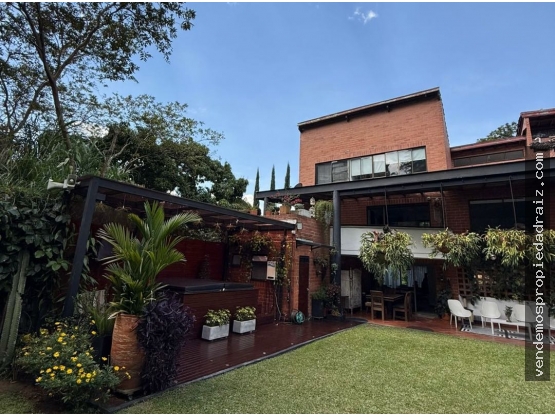 Desde el área social se accede a un deck cubierto con zona verde, rodeado de árboles nativos, jacuzzi privado, baño exterior y una sala auxiliar al aire libre. También dispone de un depósito interno o despensa y garaje cubierto para 2 vehículos.